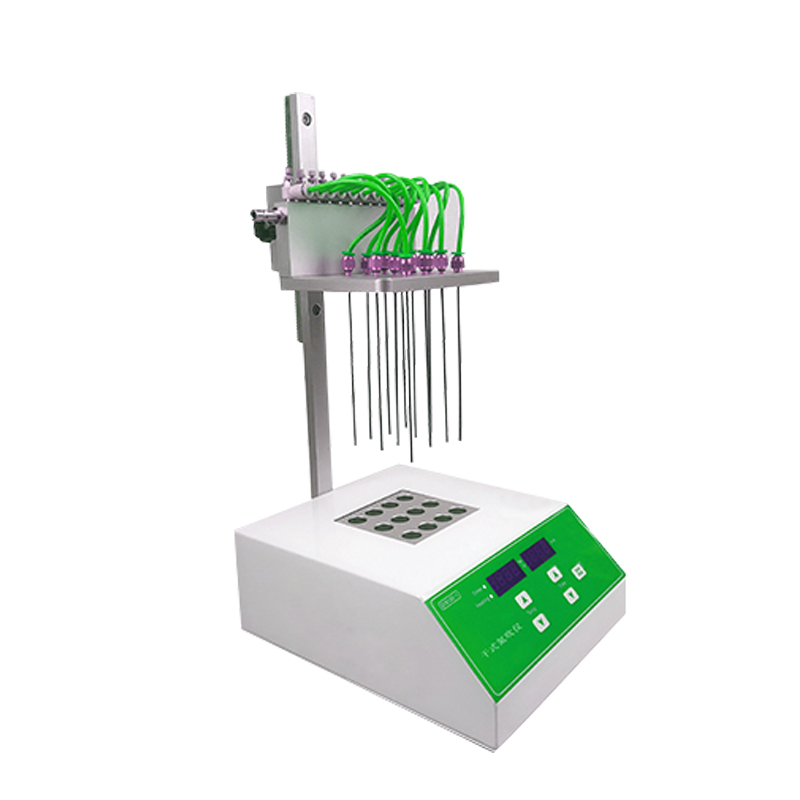 干式氮吹仪 产品说明本产品采用吹扫捕集技术,同时可对样品进行控温加热,利用氮气等惰性气体快速、可控、连续地吹到样品表面来达到样品溶液快速无氧浓缩。该方法具有省时、便捷、准确的特点。广泛用于食品安全、医药、农药残留检测、临床药代等领域。主要特征:1.气针相互独立,不会引起交叉污染。2.每个气针流量大小可单独调整3.各吹管通道可组合使用或单独使用。4.每个气针流量调节阀和模块孔位垂直对应,调整直观、方便。5.升降